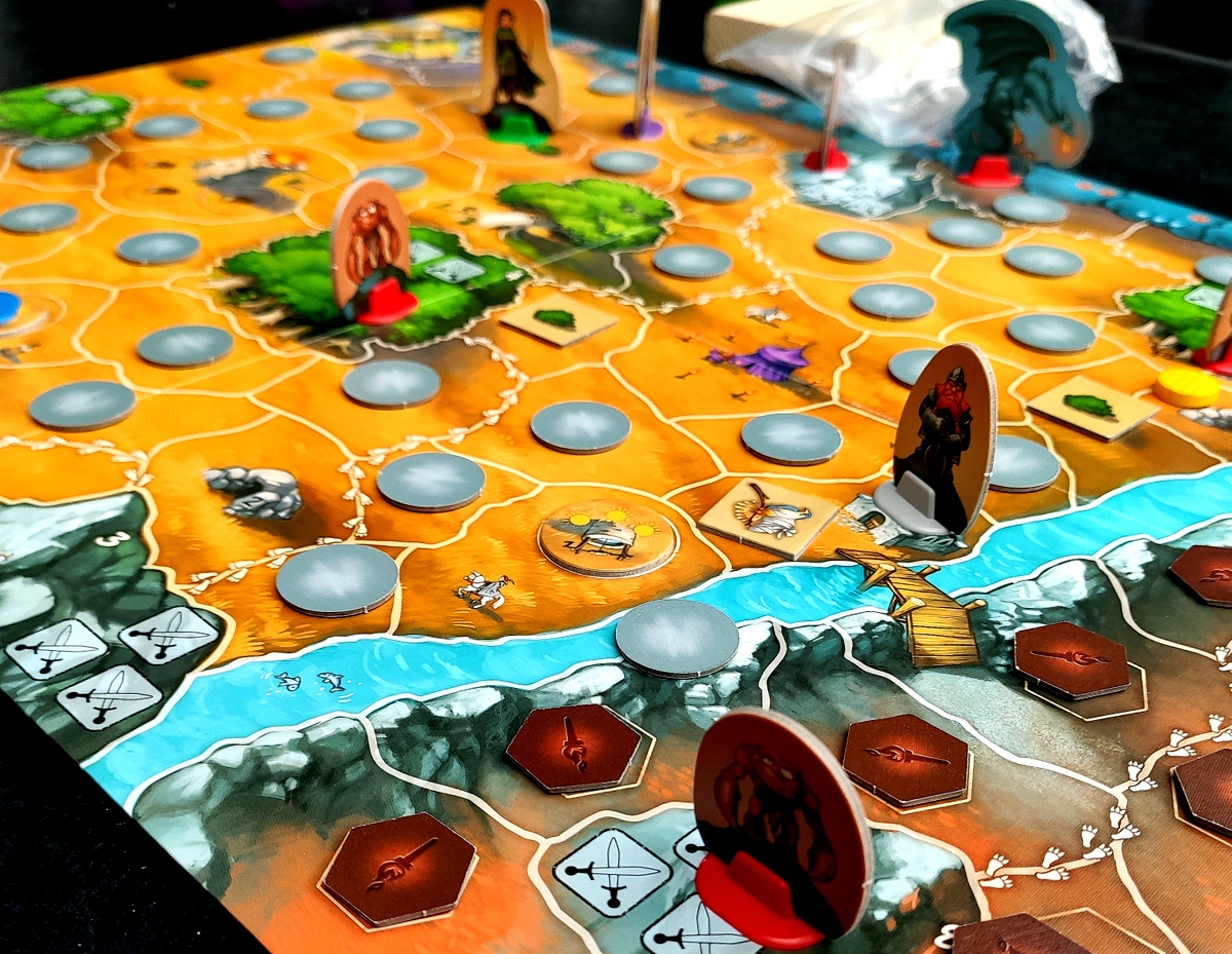 Eine besonders interessante Fähigkeit besitzen die Zwerge: Sie können unterirdische Höhlen als Abkürzung nutzen. Das sorgte bei zwei Mitspielern für eine kleine Diskussion, denn beide wollten gerne mit dem Zwerg spielen. Wir haben das so gelöst, Indem wir einfach den blauen Helden auch zu einem Zwerg umfunktioniert haben und ihm einen Würfel weggenommen haben. Er durfte damit auch die Höhlen benutzen. Das Spiel wurde allerdings dadurch deutlich schwieriger.