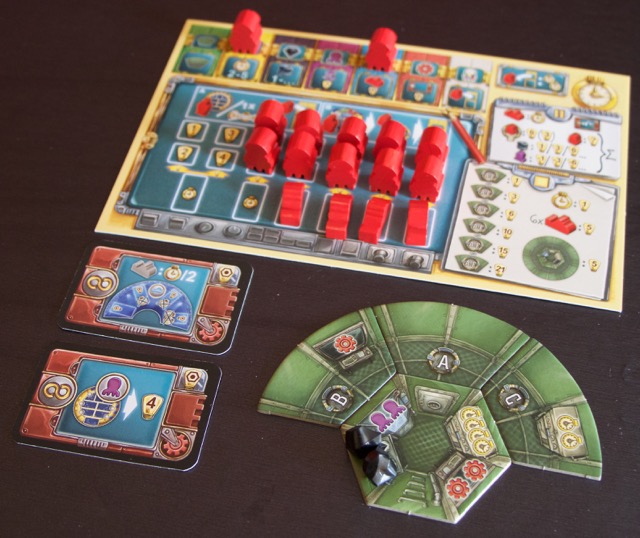 Damit die Forscher ihre Arbeit verrichten können, benötigen sie natürlich eine Menge an Bots und U-Booten. Diese werden auf den eigenen Spielertableaus gelagert. Am oberen Rand wird auch markiert, auf welche Funktion ein Bot programmiert wurde. Zusätzlich zum Tableau erhält jeder Spieler ein Labor, was er im Spielverlauf ausbauen kann. Das Labor zeigt an, wie viele Kristalle und Zeitmarker gelagert werden können, wie viele Oktopoden bekämpft und welche Anzahl an Forschungskarten haben darf.