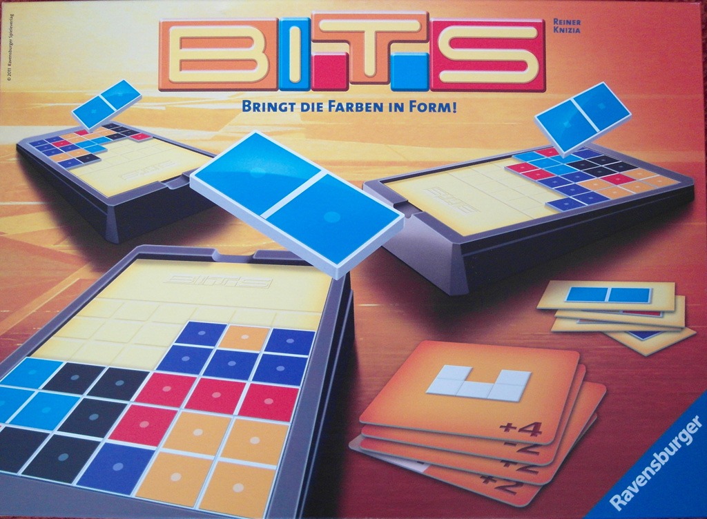 Als ich das erste Mal das Spiel „Bits“ in den Händen hielt, musste ich sofort an das altbekannte und geliebte Videospiel „Tetris“ denken, wo man vorgegebene Klötzchen geschickt in einer Reihe anordnen musste, um dafür Punkte zu erhalten. Dieses Prinzip wird in ähnlicher, aber doch völlig anderen Weise in dem neuen Spiel von Ravensburger Spiele aufgegriffen.