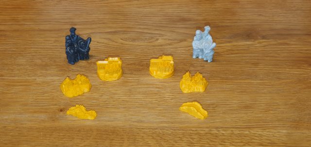 Natürlich wäre es keine Neuauflage, wenn das Design unangetastet bliebe. Glücklicherweise sind die Veränderungen dezent und subtil. Der Farbkontrast der Karten und Materialien wurde leicht verstärkt. Die Ausmodellierung der Spielsteine, also Städte, Dörfer und Straßen ist fast original gehalten, aber an manchen Stellen etwas einfacher bzw. „geradliniger“ gestaltet.