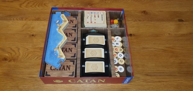 Das Titelbild hat sich kaum verändert. Noch immer prägt eine untergehende Sonne über Getreidefeldern die Verpackung – eine Tradition, die beibehalten wurde. Der Titel selbst hat sich jedoch verändert. Aus „Die Siedler von Catan“ wurde „Catan – Das Spiel“. Gut, ich fand den alten Titel schöner und nostalgischer, aber sicherlich gab es hierfür Gründe.
