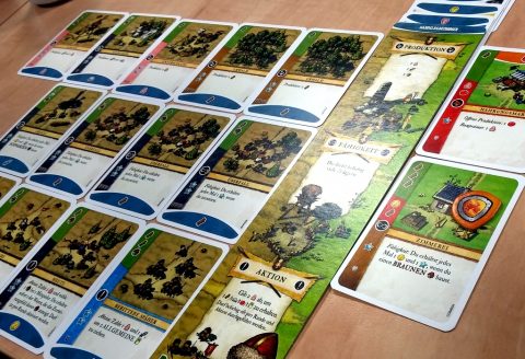 Die Spieler erhalten Karten aus einem allgemeinen Pool und aus einem auf ihr Volk abgestimmten Deck. Die eigenen Karten bringen dabei in der Regel mehr Siegpunkte ein, wenn sie gebaut werden. Auf den Karten befinden sich Gebäude, Landschaften oder manchmal Zivilisations-Errungenschaften. In der Regel werden alle diese Bezeichnungen als “Orte” zusammengefasst. Wir bauen also Orte.