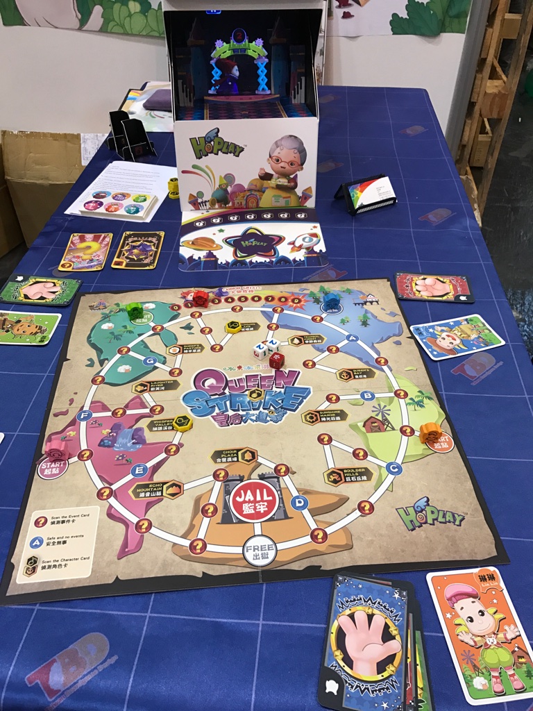Queen Strike“ vom ebenfalls taiwanesischen Verlag „HoPlay“ erfordert zwingend ein iPad zum Spielen. Dieses wird auf eine Kartonkonstruktion gelegt und nutzt eine Projektionstechnologie um ein Hologramm darzustellen. Zusätzlich wird die iPad Kamera verwendet um Karten zu erkennen. Die App gibt dem Spieler audiovisuelle Anweisungen was er auf dem Spielbrett zu tun hat.