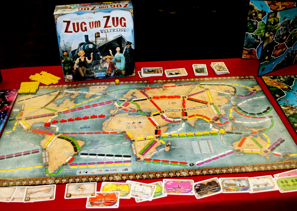 Den Fans von Eisenbahnspielen geht es wie den Piraten, könnte man meinen, In jedem  Jahr erscheinen Spiele zum Thema, in diesem Jahr sind Eisenbahn Themen aber wieder deutlicher präsent. Das liegt vor allem am diesjährigen Hans im Glück Release „First Class“ und an “ Railroad Revolution, das bei What`s your Game“ erschienen ist. Auch der Eisenbahn – Dauerbrenner „Zug um Zug“ bekommt mit „Weltreise“ eine große neue Variante. Klein und handlich dagegen ist „North American Railways“ bei Spielworxx, das bereits kurz vor der Messe erschienen  und leider bereits vergriffen ist.