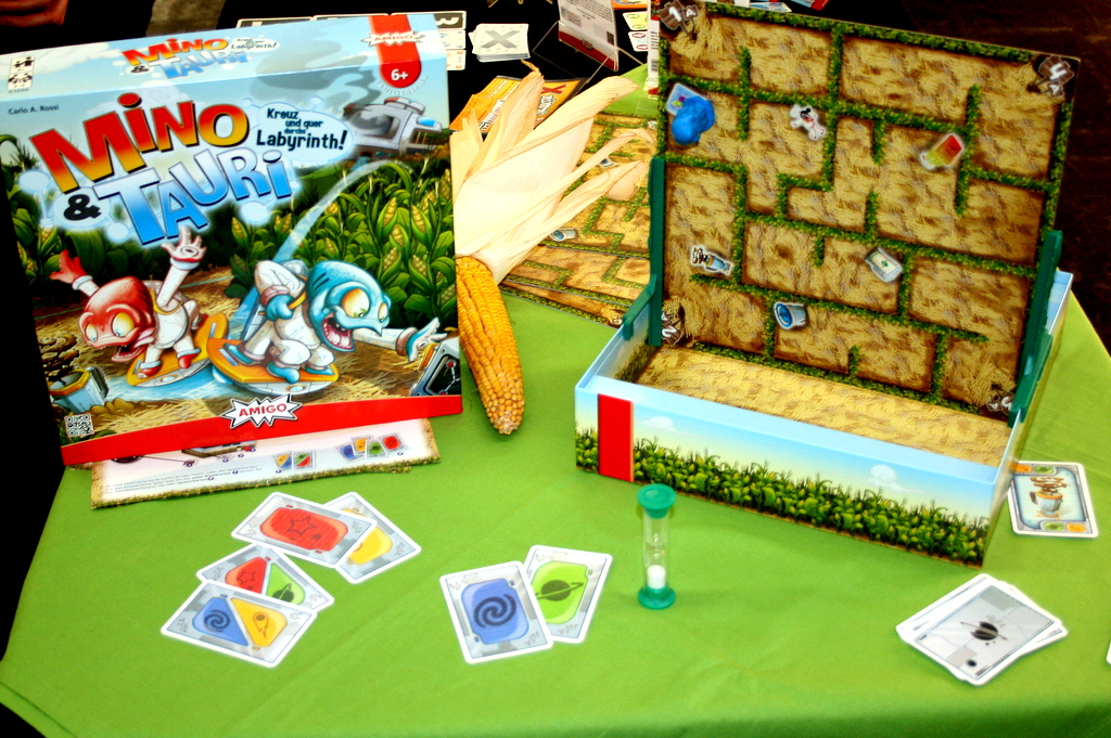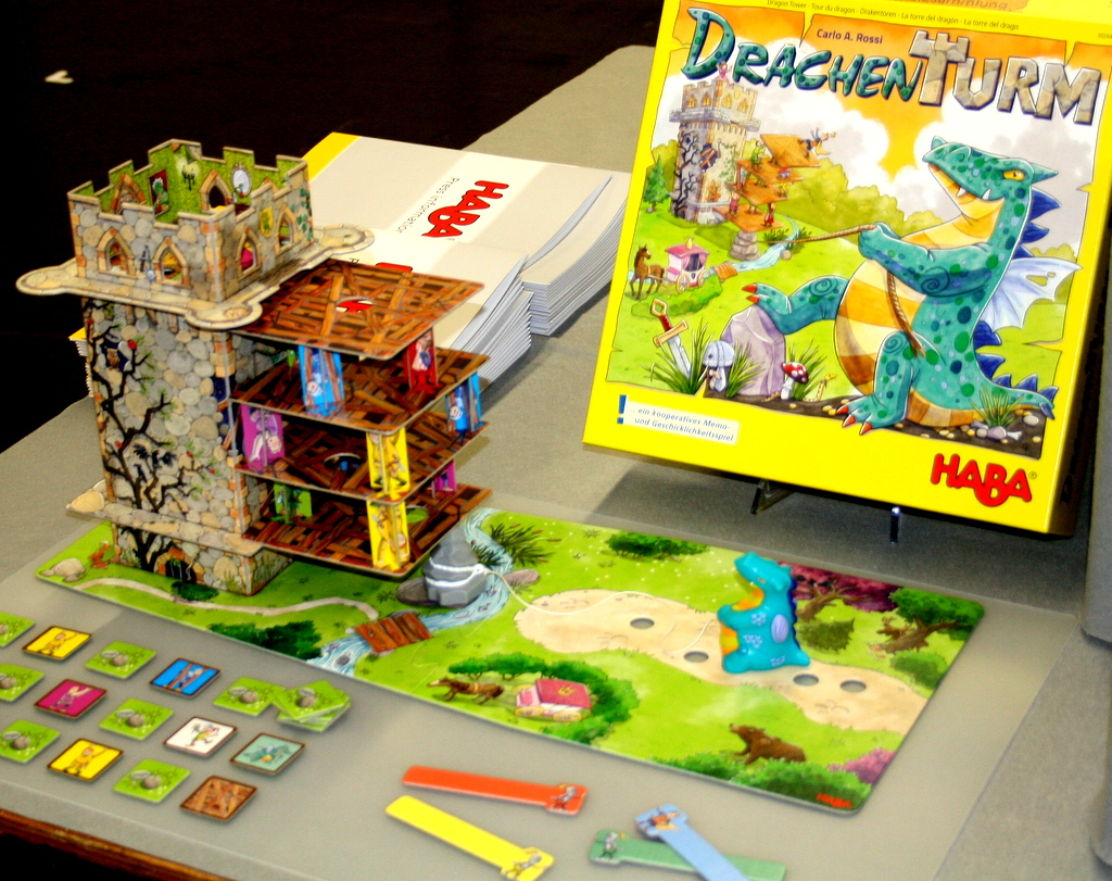 Ein paar weitere Kinderspiele sind uns ebenfalls aufgefallen: Drachenturm von HABA hat einen imposanten 3d-Aufbau, Das verrückte Labyrint bei Ravensburger feiert 30-jähriges Bestehen. Die Sonderausgabe kann man theoretisch im Dunkeln spielen, denn das Spielmaterial kann fluoreszieren. Drei Magier spiele schickt uns mit „Kullerhexe“ ebenfalls in den Hexenwald. Franjos Spiele hat wieder ein klassisches Spiel neu aufgelegt. Das Rennspiel Donkey Derby stammt aus dem Jahr 1989 und wurde von Franjos Spieleverlag mit frischer Grafik und einigen optimierten Spielelementen ausgestattet.