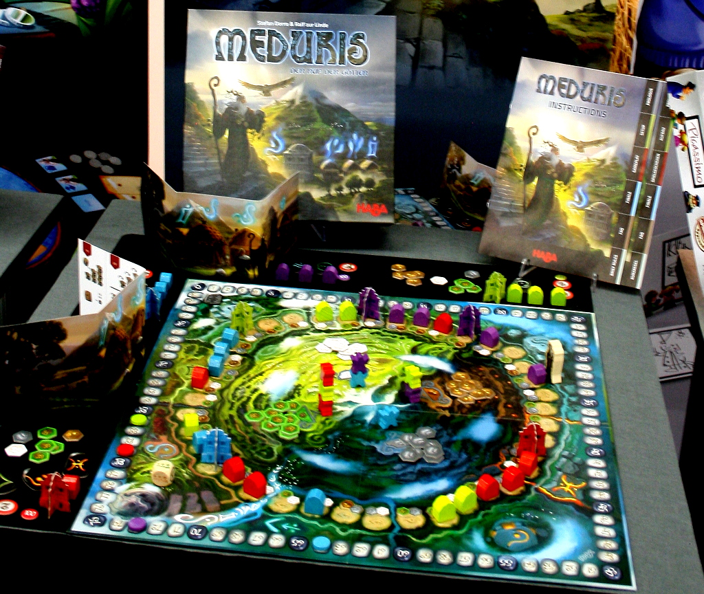 Nachdem  HABA im letzten Jahr erfolgreich ins Genre der Familienspiele eingestiegen ist, findet dies in diesem Jahr eine Fortsetzung. Meduris – der Ruf der Götter wirkt dabei mit seinem Götter/Druiden – Thema mystisch und geheimnisvoll und dürfte das komplexeste der Neuheiten sein. Picassimo ist ein Malspiel, bei dem Teile des zu malenden Kunstwerks miteinander vertauscht werden. Das macht den Spielern das erraten etwas schwerer. Etwas für Zocker ist das Auktionsspiel Lady Richmond, deren Nachlass zur Versteigerung freigegeben ist.