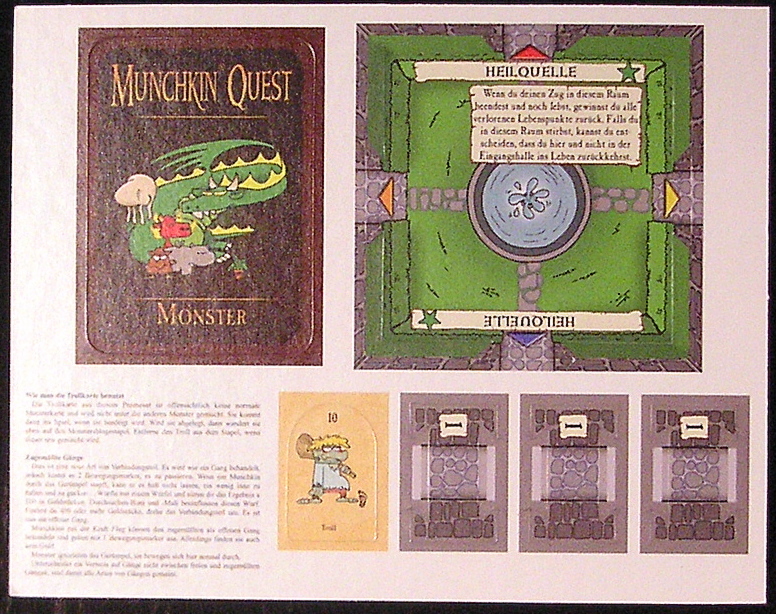 Diese Erweiterung enthält neben der Trollkarte, einen doppelseitig bedruckten neuen Raum. Einmal die Trollbude und die Heilquelle. Es gibt auch eine neue Sorte Gänge und ein neues Troll Monster.