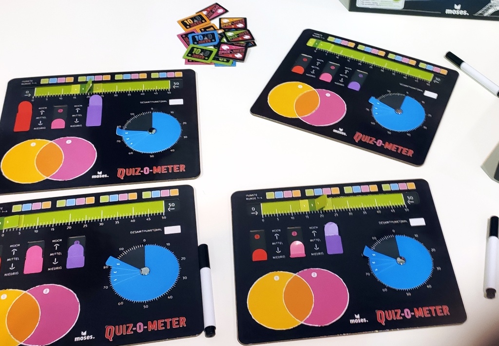 Wenn es Neues auf dem Markt der Quizspiele gibt, sind wir immer ganz Ohr. In diesem Jahr ist uns beim moses – Verlag ein interessantes neues Konzept aufgefallen. Der Name Quiz-o Meter ist dabei Programm, aber dazu später mehr.