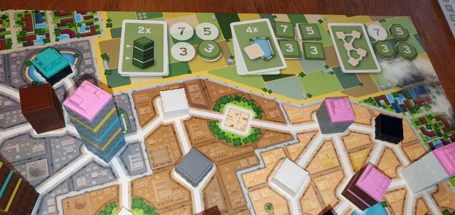 Gefühlt hat der Startspieler anfangs einen kleinen Vorteil, da er freie Auswahl auf der noch leeren Karte hat. Im Verlauf relativiert sich das jedoch, da nachfolgende Spieler oft durch höhere Gebäude schneller Punkte generieren.